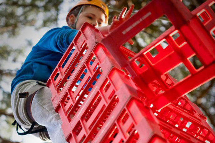 Crate Stacking Crate Climbing is placing one crate on top of another with the scout…